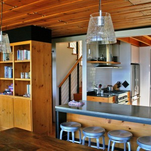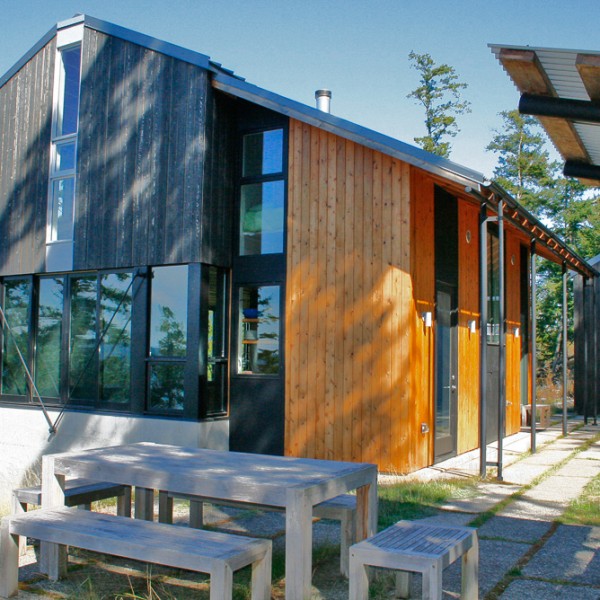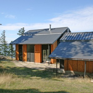 This vacation home and guest quarters are part of a planned development where the vehicle access is restricted and the native quality of the island is preserved. The owners desired a simple, barn like design when they approached architects Bob Hull and Renee Boone of Miller Hull Partnership LLP. Elaborate finishes, blackened steel, precision cut paneling, along with re-claimed, wide plank floors and interior barn doors are examples of the efforts combined. The final result would be a stylish combination of modern and rustic materials.