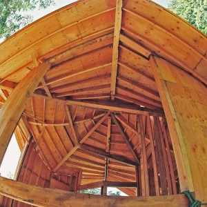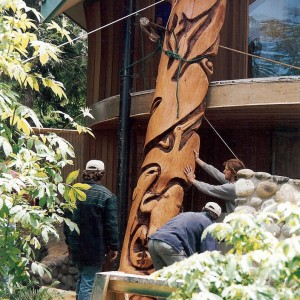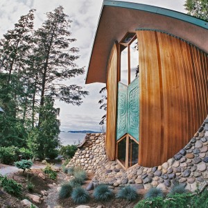This unique structure was the newest addition to the rental retreat cabins at North Shore Cottages on Orcas Island. Designed by world renowned artist James Hubbell, this highly creative and challenging project evokes an organic feeling and looks as if it grew up from the earth. Using compound curves throughout, techniques used included plaster lathe for concave interior walls and ceilings, arched cedar siding and sweeping waves of river rocks. Decatur Construction employed dozens of artisans for crafts such as custom fit cabinetry and furniture, forged iron, brass and copper, extensive mosaic work and wood sculptures.